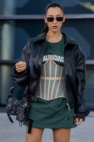 Layering an oversized t-shirt under a bomber jacket adds an urban edge to your look, perfect for a cool, laid-back vibe. Opt for a jacket in classic neutral tones like black or olive, or try bold colours and prints to make a statement. Pair it with slim-fitting trousers or joggers to balance the overall silhouette. Sneakers are the ideal footwear here, whether they’re chunky or sleek. Add a beanie or snapback cap for a touch of streetwear style.