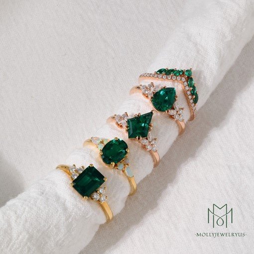 A bridal ring set combines an engagement ring and a wedding band designed to complement each other perfectly. These sets ensure a seamless, cohesive look that enhances the beauty of both rings when worn together. MollyJewelryUS offers a wide range of bridal ring sets, featuring moissanite, lab diamonds, and other stunning gemstones in matching designs.